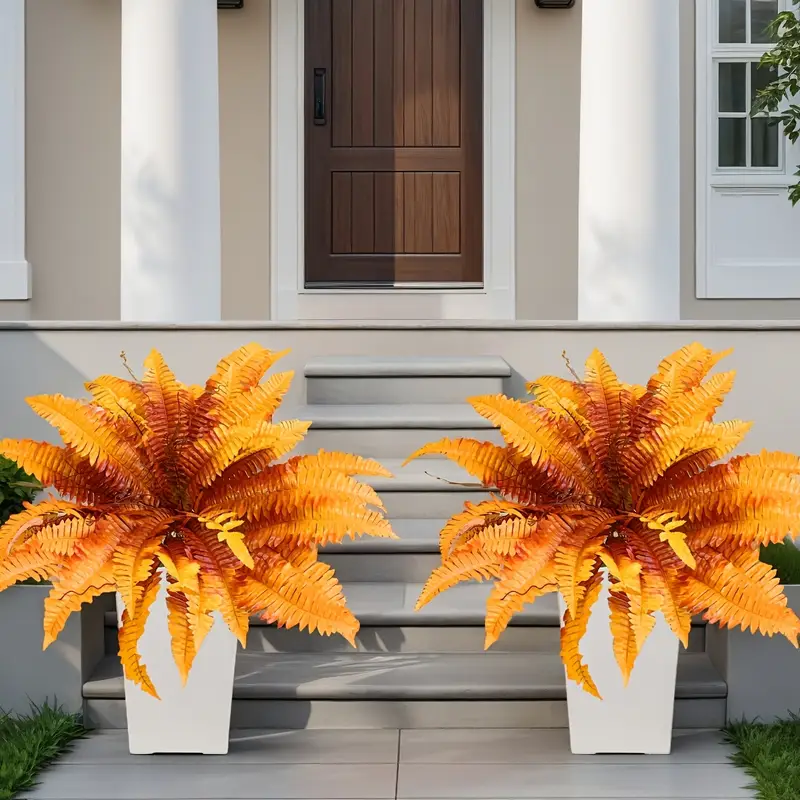 O plantă artificială mare, realistă, ferigă Boston – culori de toamnă (portocaliu-galben până la roșu intens), ferigă artificială fără întreținere pentru casă, birou, Ziua Recunoștinței, Halloween, decor de absolvire – decorațiune interioară/exterioară, decor cu plante, decorațiune sezonieră, design cu frunze zimțate, finisaj vibrant în culori, decorațiune de sărbători, frunziș durabil, cadouri de sărbători.