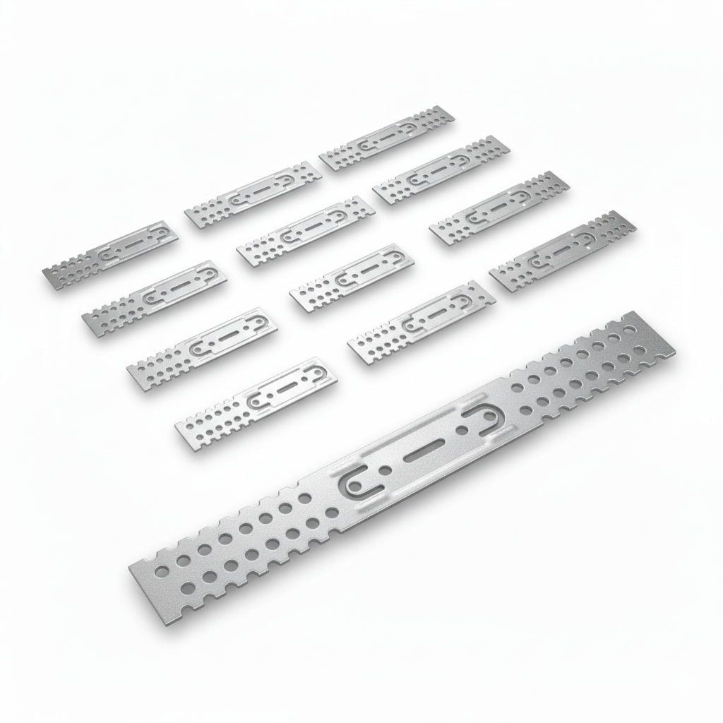 Aceste bride multiple sunt utilizate pentru fixarea profilelor CD 60 într-un sistem de gips-carton, iar dimensiunile și grosimea menționate indică specificațiile tehnice ale produselor.