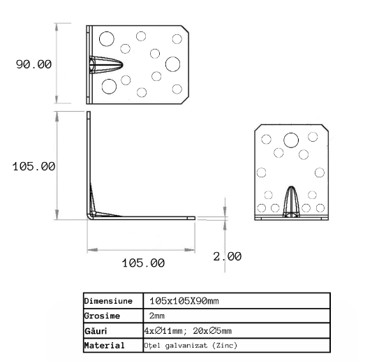 Acest set conศine 10 de colศare perforate pentru lemn, tip vinclu, cu unghi de 90 de grade (tip 4n), realizate dinย tablฤ zincatฤ. Fiecare colศar are dimensiunile de 105 x 105 x 90 mm, oferind o soluศie fiabilฤ ศi rezistentฤ pentru รฎmbinarea ศi intฤrirea structurilor din lemn. Datoritฤ perforaศiilor, montajul se realizeazฤ rapid ศi eficient cu ศuruburi sau cuie, iar zincarea asigurฤ protecศie รฎmpotriva coroziunii, fiind potrivite atรขt pentru proiecte interioare, cรขt ศi exterioare.