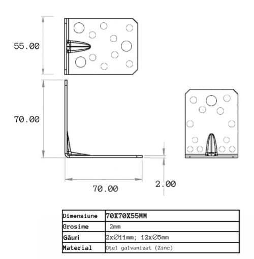 Acest set contine 10 coltare perforate pentru lemn, tip vinclu, cu un unghi de 90 de grade si tip 4n, fabricate dinย tablฤ zincatฤ. Dimensiunile colศarului sunt 70 x 70 x 55 mm, iar perforaศiile permit o fixare uศoarฤ ศi sigurฤ cu ศuruburi sau cuie. Colศarele sunt destinate รฎmbinฤrii ศi consolidฤrii structurilor din lemn, oferind o susศinere stabilฤ ศi durabilฤ. Stratul de zinc protejeazฤ รฎmpotriva coroziunii, fฤcรขnd aceste colศare potrivite atรขt pentru utilizare interioarฤ, cรขt ศi exterioarฤ.