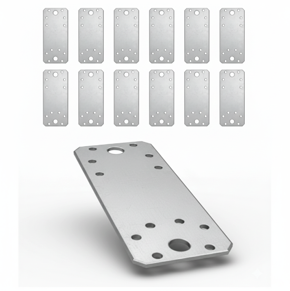 Pachet 10 Suporturi plate 140×54 / Conector perforat / Imbinari pentru grinzi din lemn / Schelet pentru acoperis / Metal galvanizat (zinc)