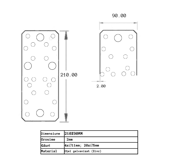 Coltar perforat pentru imbinare lemn 210×90 mm