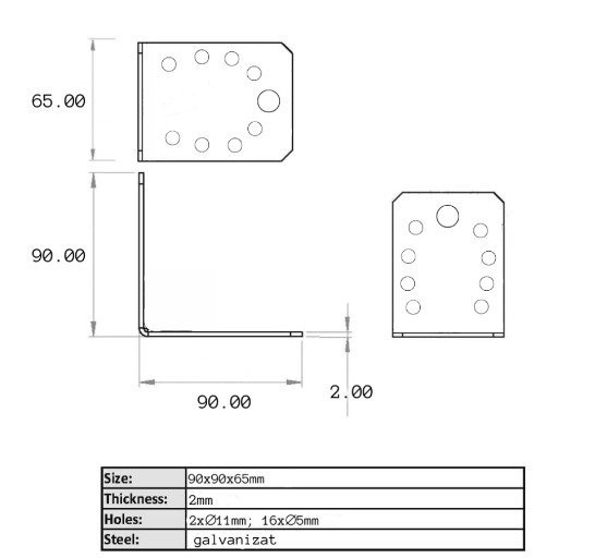 | Tip | Colศar perforat pentru lemn 90x90x65 mm |