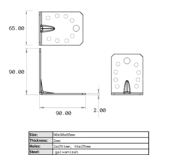 | Tip | Colศar perforat pentru lemn 90x90x65 mm, tip 4n |