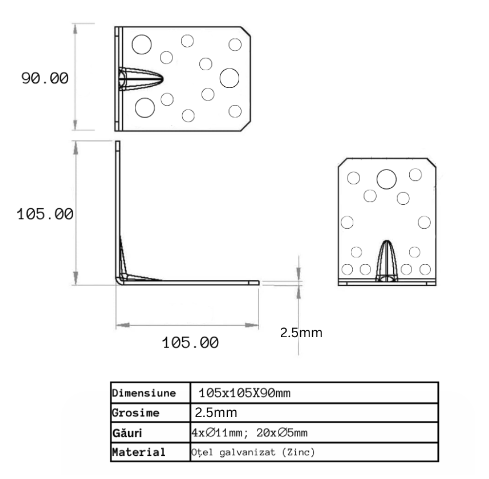 | Tip | Colศar perforat pentru lemn 105x105x90 mm tip 4n |