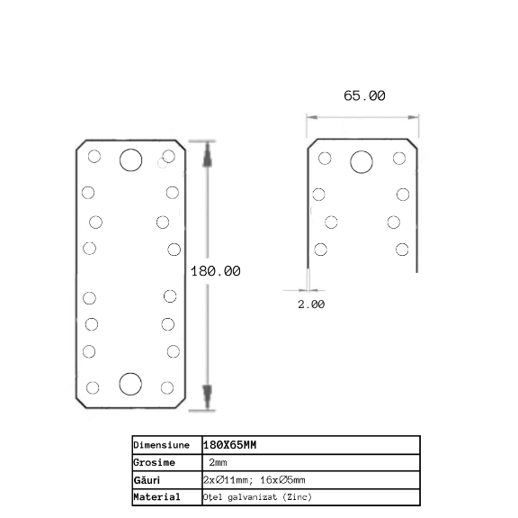 PLACA, COLTAR PERFORAT PENTRU IMBINARE LEMN 180X65 MM