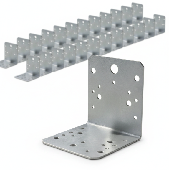 set 50 Suporturi de colt 105+105×90 / Conector perforat / Imbinari pentru grinzi din lemn / Schelet pentru acoperis / Metal galvanizat (Zinc)