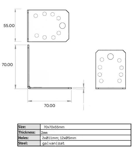 VINCLU SIMPLU 90 GRAD 70MM PWC-MON-2.3 COLTAR PERFORAT PENTRU LEMN 70X70X54 MM set 50 Suporturi de colt 70+70×54 / Conector perforat / Imbinari pentru grinzi din lemn / Schelet pentru acoperis / Metal galvanizat (Zinc) ATLANTIC 1979 Coltar perforat pentru lemn 70x70x54 mm CARACTERISTICI: Acoperire rezistentฤ la apฤ, rezistentฤ la coroziune, ignifugฤ, durabilฤ