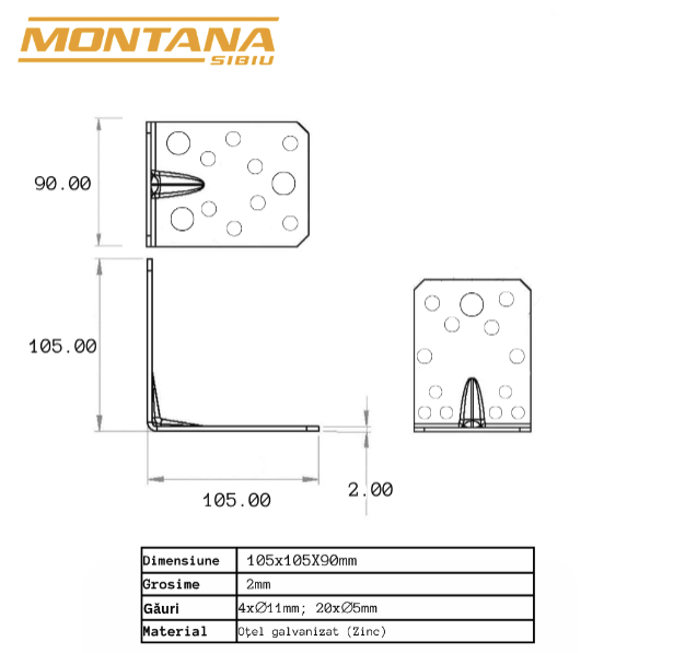 | Tip | Colศar perforat pentru lemn 105x105x90 mm tip 4n |