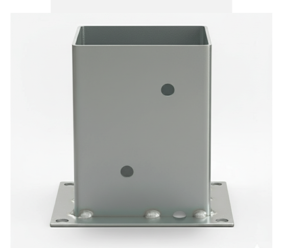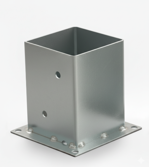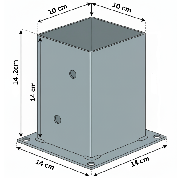 •Dimensiuni: Proiectat pentru a susține un stâlp de lemn cu dimensiuni de 100×100 mm (10×10 cm). Dimensiunile interioare sunt ajustate pentru a fixa stâlpul în siguranță.