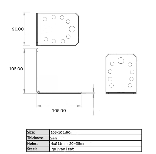 | Tip | Colศar perforat pentru lemn 105x105x90 mm |