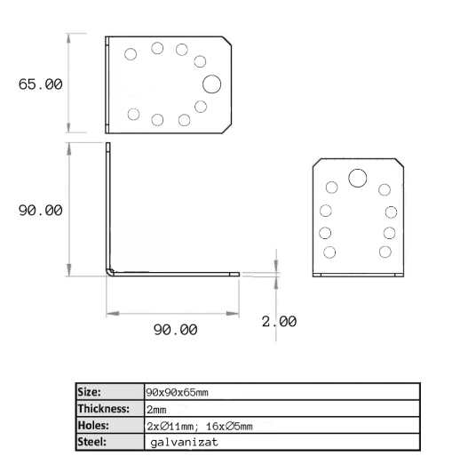 Acest vinclu simplu 90 grade are dimensiunile 90x90x65 mm ศi o grosime de 2 mm, fiind un element de fixare utilizat pentru รฎmbinarea a douฤ componente la un colศ de 90 de grade. Este fabricat din material rezistent, cu o grosime de 2 mm, ceea ce รฎl face potrivit pentru construcศii sau lucrฤri ce necesitฤ un suport stabil ศi solid. Designul sฤu simplu ศi robust asigurฤ o fixare eficientฤ ศi durabilฤ, fiind ideal pentru utilizฤri industriale sau proiecte de construcศie interioare.
